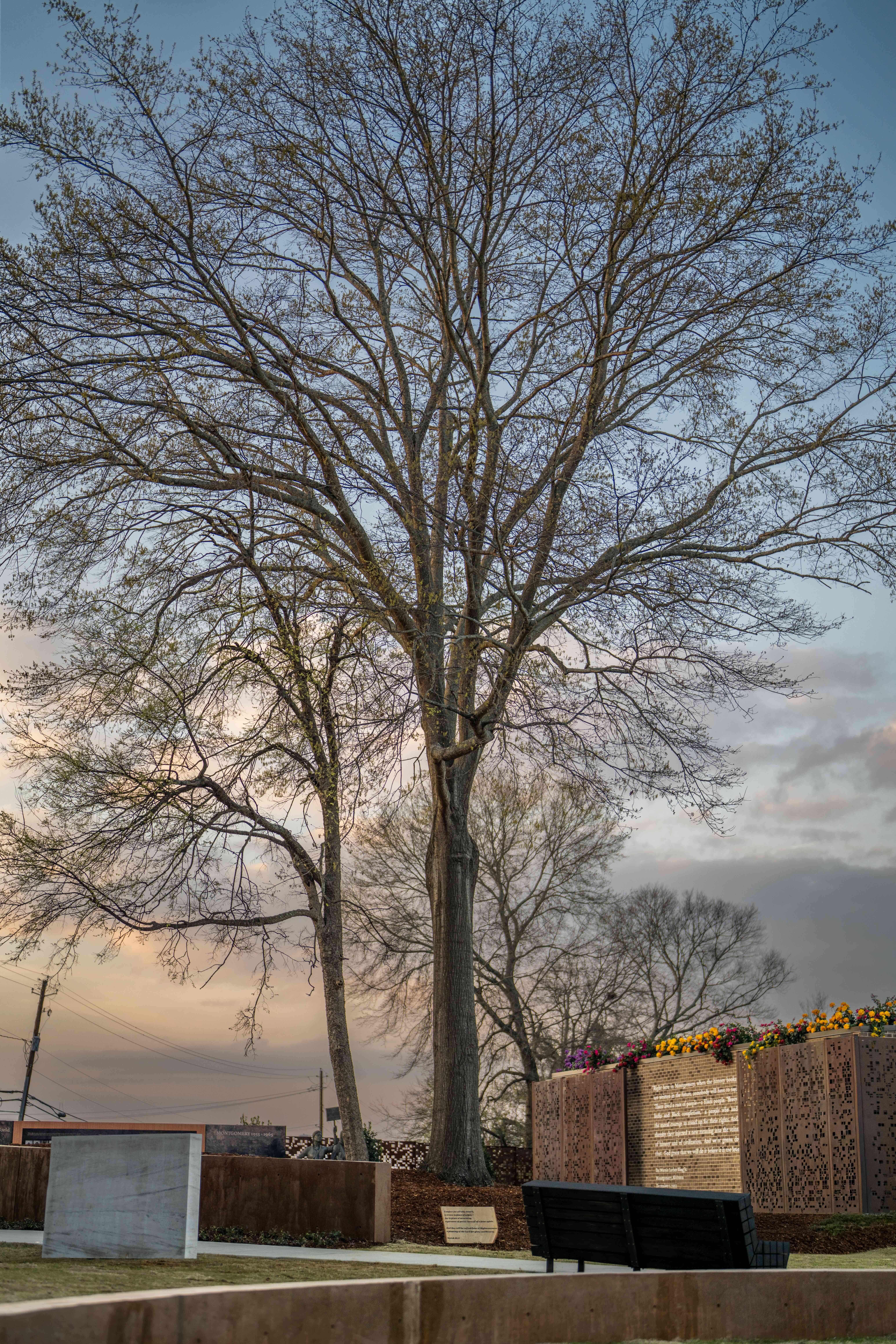 Montgomery Square is built around a giant oak tree that witnessed as thousands of Black people walked the city’s streets to end segregation in 1955 and tens of thousands risked their lives to end Black disenfranchisement in 1965.